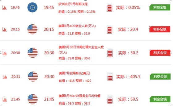 美國adp和初請失業金數據齊齊顯示利多金銀,接著7月貿易帳和8月markit服務業pmi終值顯示利空金銀。在密集數據的輪番刺激之下,現貨白銀走出一波沖高回落的行情。目前市場焦點移向非農 。