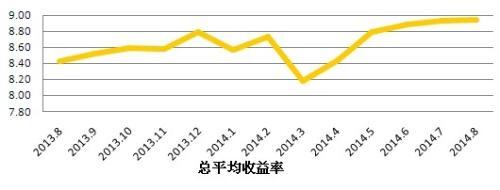 從產品收益水平來看,本月發行的產品存續期從1年到10年不等,預期年化收益率從6%到10.8%不等,整體平均收益率為8.94%,較上月小幅上升。