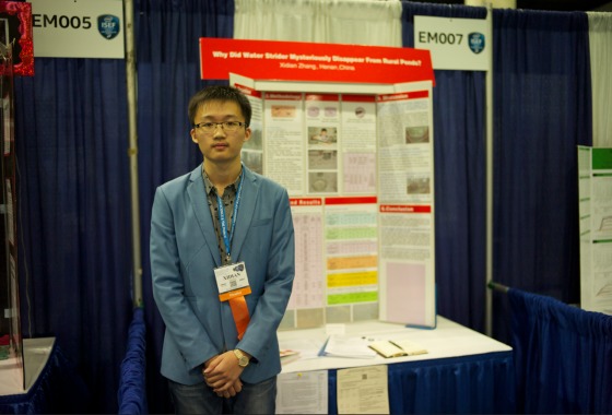 被大家戲稱為“水黽君”的河南濮陽第一高中的高三學生張溪典就是這樣一個具有社會責任感的男孩。他的項目“農村小水體面源污染對水黽生存的影響探究”在此次ISEF大會上獲得了美國獸醫協會頒發的環保項目一等。與獲獎相比,這個項目和他本身的故事更加令人印象深刻。