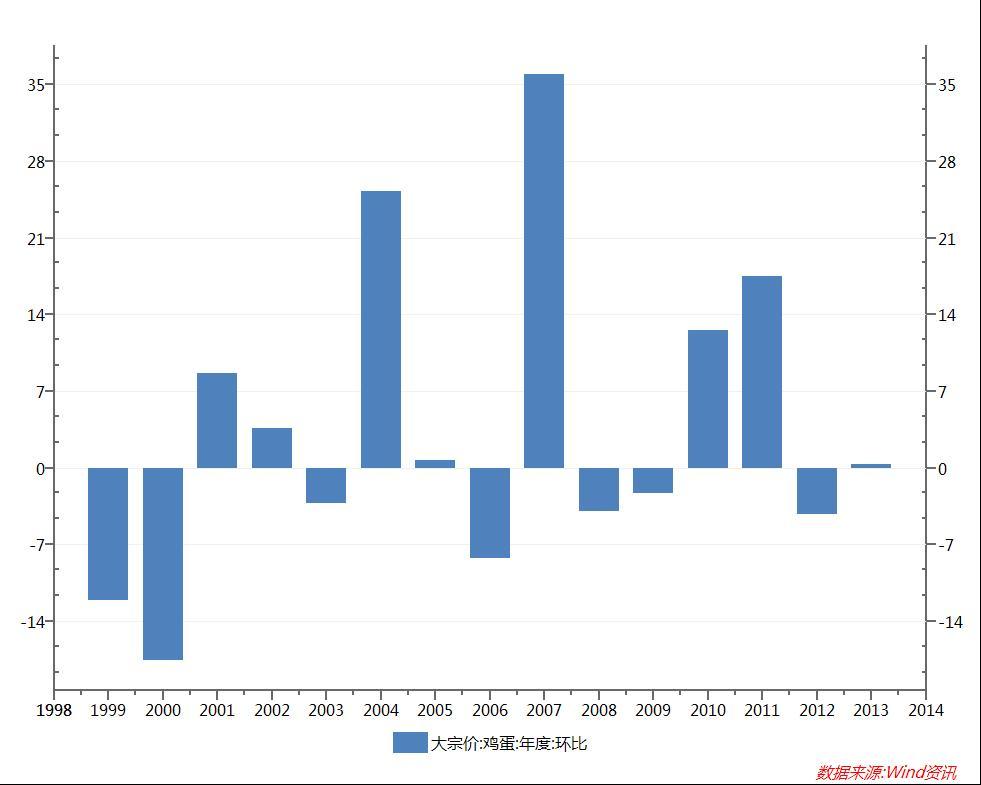 如果我們把2011年-2013年的三年可以看做一個周期,那么2011年則為雞蛋的“大年”,而2012年和2013年為“小年”,這或許也是導致2011年相對2012年和2013年走勢不同的原因。2011年在9月后創出年內高點后,從“大年”到“小年”轉變時,回調幅度更大。