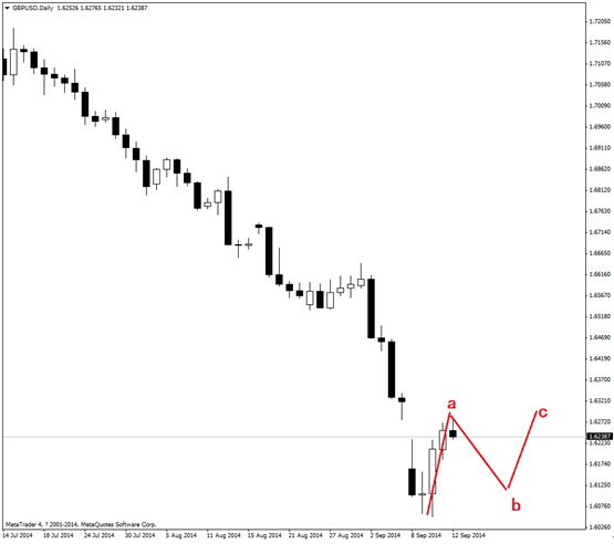 天圖分析來看,行情在深度下跌之后存在修正的機會,即運行abc調整浪的情形。因此,可短期買入英鎊/美元的看跌期權,短期參考目標位置1.6100整數關口附近。