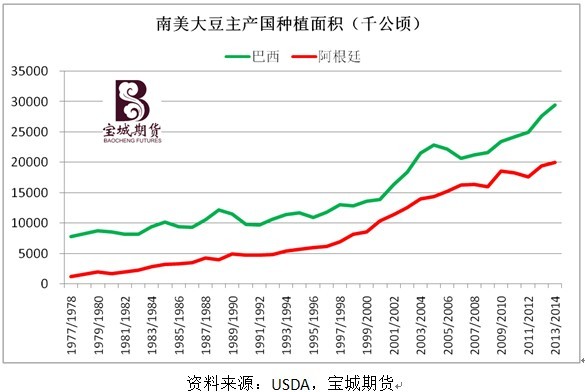 我們認為,近年來巴西大豆種植面積的急劇擴張,是推動全球大豆產量及庫存走高的重要原因,也將成為未來影響全球大豆供需基本面的重要因素。雖然巴西大豆的出口面臨著物流成本高昂和港口效率低下等問題,巴西政府也只是剛剛開始增加公路、鐵路和港口等基礎設施的建設投資,但是若干年后,生產成本更低的巴西大豆可能對美國大豆構成直接威脅。