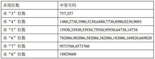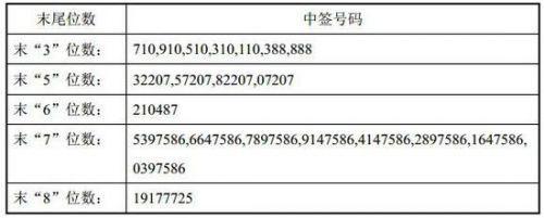 凡參與本次網上按市值申購定價發行的投資者持有的申購配號尾數與上述號碼相同的,則為中簽號碼。中簽號碼共有31,500個,每個中簽號碼只能認購1,000股華懋(廈門)新材料科技股份有限公司A股股票。