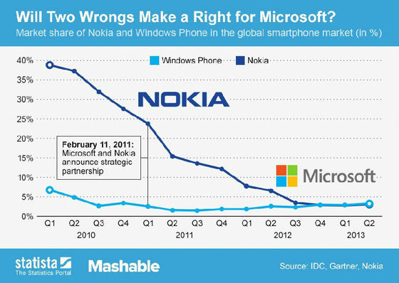 試想一下,如果微軟當初不和諾基亞合作,微軟採取與 OEM 合作夥伴單獨推廣自己的 Windows Phone 會是什麼局面?我們這裡不是玩馬後炮,但從微軟與諾基亞合作,到微軟並購諾基亞之後 Windows Phone 的市占率不增反降看,即便微軟單獨推廣 Windows Phone 最差的結果也不過如此,好歹還有落個其他合作夥伴的支援和打造了自己的 Windows Phone 品牌,但今天微軟不得不將 Windows Phone 品牌與諾基亞品牌一起埋葬。