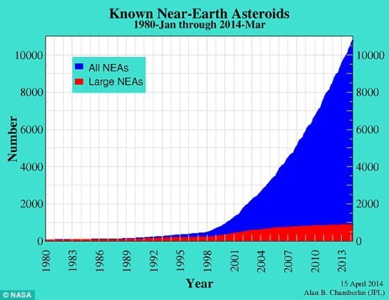 隨時間推移,天文學家們已經在內太陽系發現了超過60萬顆小行星。在這其中,大約有1萬顆被歸入近地天體(NEOs),而在這1萬顆小行星中又有大約1500顆被歸類為“潛在威脅小行星”(PHAs)。