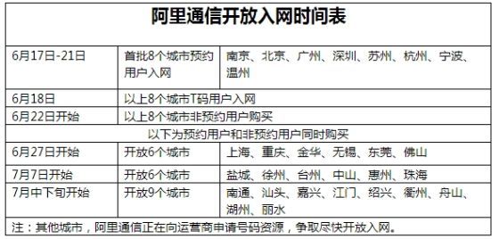 新浪科技訊 6月16日消息,據了解,6月17日起阿里通信將逐步開放29個城市的在入網辦理,預約用戶享2014年話費7折補貼政策,存30送30元話費。170“親卡”由順豐免費快遞到家,7天內收不到卡,全額賠償首次充值金額。