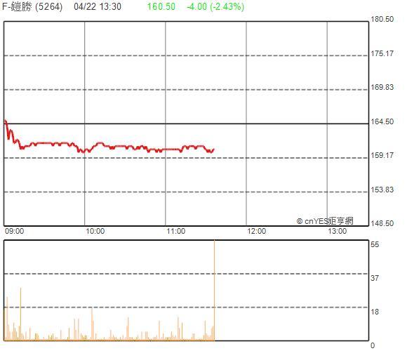 F-鎧勝周三大漲4.84%,現股漲勢亦帶動權證漲勢,平均漲幅介於30-50%間,多檔連結F-鎧勝權證成交量均逾千張。
