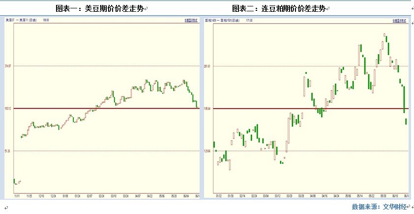 5、豆粕現貨與期貨價差縮小到145元/噸