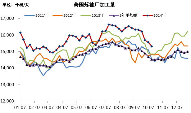 雖然下游油品需求略有回升以及煉油廠開工率大幅下降導致下游油品庫存大幅減少,其中備受市場關注的餾分油庫存減少152萬桶,當前值與去年同期水平持平,但是開工率下調卻引發美國原油商業庫存大幅上升,這與我們之前的預期是完全一致的。未來,我們認為煉油廠開工率還將持續下降,這將加快美國原油商業庫存上升的步伐,對國際油價是利空因素,本周三就導致wti油價跌至80美元。