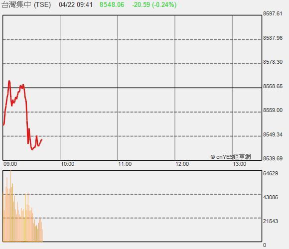 台股盤中─大立光走揚 台積電小跌 大盤平盤附近來回震盪