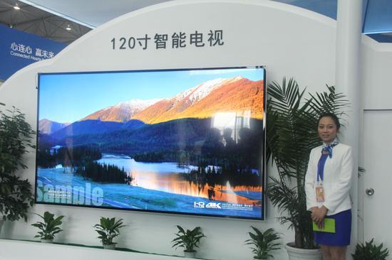 據富士康工作人員介紹,這款規格為120寸的4K2K超高清電視集觸控整合技術、窄邊框技術,具有高分辨率、高色彩飽和度特點。