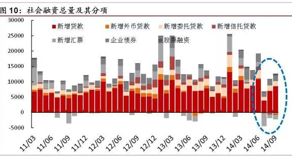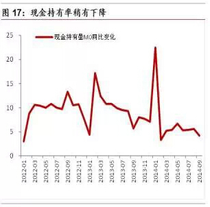 9月份5000億元slf、降低回購利率等貨幣政策從量價兩個方面影響銀行體系行為,致使融資利率下行與貨幣數量寬鬆的格局同時出現,主要保增長政策與調結構同時進行,造成風險偏好的提升,現金持有量及存款均有所下滑,高收益、高風險資產如股票、理財產品、信用債等表現良好。