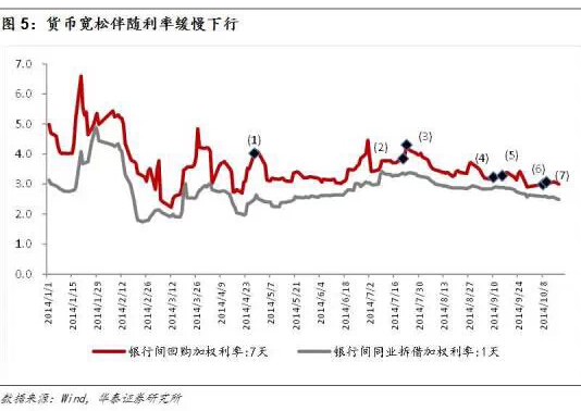 在一季度經濟下行壓力有所加大的前提下,今年以來的貨幣政策始終維持著寬鬆的格局,進入7月份以來對於經濟下行的擔憂部分被歸結為融資成本居高不下所致並且政府采取了一系列的降低融資成本的措施,尤其是9、10兩個月slf的投放以及回購利率的下調一方面使得貨幣政策延續寬鬆的格局,另一方面,以回購利率為代表的無風險利率已經展開降息周期(圖5)。