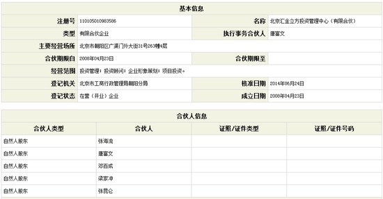 匯金立方資本管理有限公司注冊在北京,董事長王誠。工商登記信息顯示,其全資控股的母公司為“北京匯金立方投資管理中心(有限合伙)”,成立於 2008年04月23日,經營商所位於北京市朝陽區廣渠門外大街31號263幢4層,核准的經營範圍為投資管理、投資顧問、企業形象策劃和項目投資。