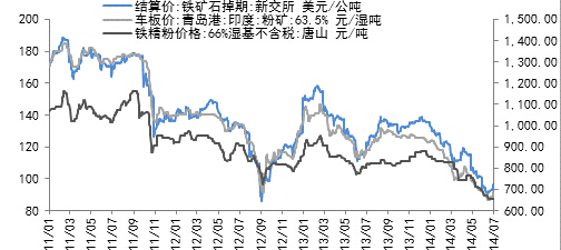 國內鐵礦石年產量在總需求中的占比達36%,在礦石價格長期低於100美元/噸情況下,部分礦石迫於成本壓力出現限產減產,雖然對價格有些利多刺激,但是影響較為有限。