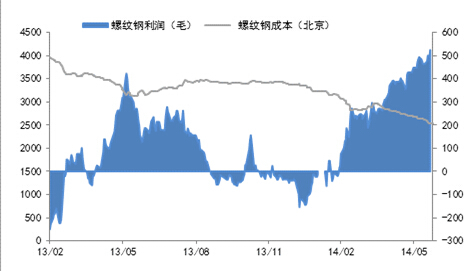 (三)鋼材:產量居高不下,弱勢局面下維持較好利潤
