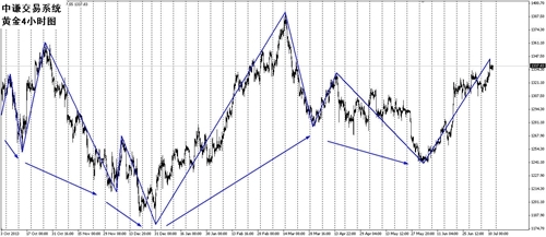 分析:上周市場拉升上行,高位1345,低位1311,全周波幅338點。與上周分析對比,高點偏差90個點,低點偏差了38個點,方向正確。根據中謙交易系統分析,后市有望形成一波拉升行情。本周市場繼續震盪上行,高點1350,低點1320。