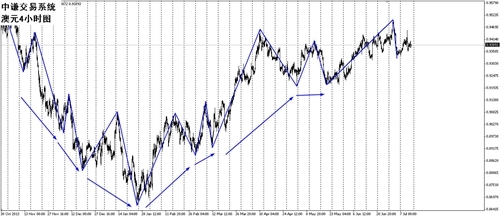 分析:上周市場沖高回落,高位0.9454,低位0.9340,全周波幅114點。與上周分析對比,高點偏差了54個點,低點偏差了62個點,方向分析錯誤。根據中謙交易系統分析,后市有望回調到0.9200一帶后轉勢。本周市場繼續震盪平移,高點0.9460,低點0.9330。