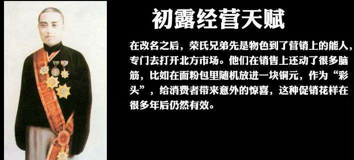 在改名之后,榮氏兄弟先是物色到了營銷上的能人,專門去打開北方市場。他們在銷售上還動了很多腦筋,比如在面粉包里隨機放進一塊銅元,作為“彩頭”,給消費者帶來意外的驚喜,這種促銷花樣在很多年后仍然有效。1904年,東北爆發了日俄戰爭,面粉需求陡然增加,生意一下子就好了起來。兩兄弟還十分重視對新技術的投入。1905年,他們得知英國的制面設備比法國的要好,馬上決定購進六部英制鋼磨機器,生產能力頓時翻了一番。不久后,他們得悉美國研制出了新的面粉機,效能更加優良,於是又下決心舉債采購。