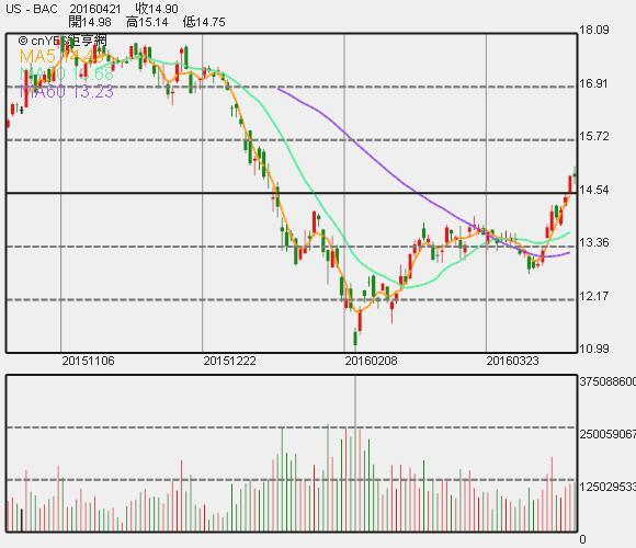 美國銀行股價線圖