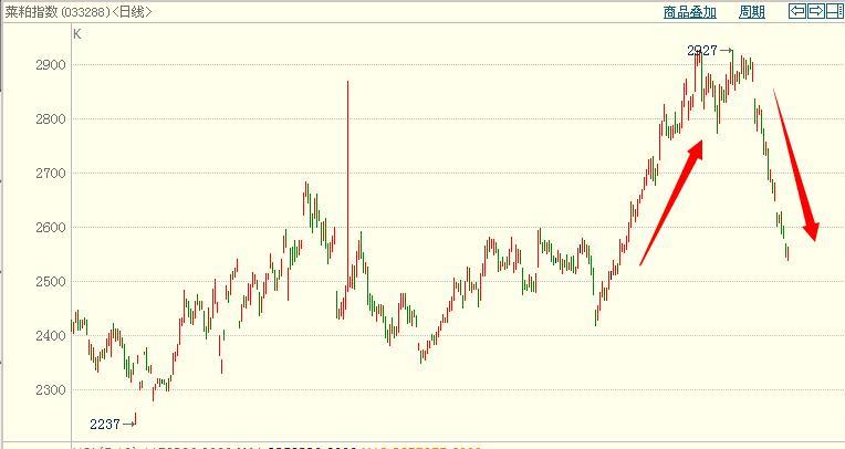 2014年春節后因水產養殖備貨期的開始,菜粕啟動了一波強勢的上漲行情,1409合約由3月中旬的2500附近上行至5月下旬的3118,漲幅達到25%,國產菜粕由3月底的2900上漲至6月中旬的3200,漲幅達到10.3%。進入6月后,行情趨於平穩。6月末,美農業部公布美豆種植面積大幅增加的重大利空,打壓粕類價格深度下挫,開盤跌停。