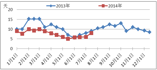 此外,目前已進入7月下旬,進入8月交易所將提高9月合約的保證金,並且期價較現價仍有300左右的貼水,因此,隨著離交割日的越來越近,對空頭而言將越來越被動。