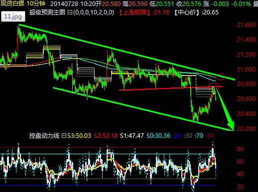 從白銀圖表走勢上看,在周四加速補跌后,形成了明顯的下行頻道走勢,同時加速補跌后周五引發了一些空頭的獲利回吐,使得價格出現反彈,而在反彈過程中,白銀始終承壓於上周初形成的低點連線壓力下該壓力對於的人民幣價格約在4110元/公斤(新華)。