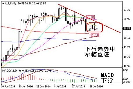 技術面來看,日k線圖上,上交易日銀價沖高回落,暗示短期下降趨勢線下方有較大的阻力,不過銀價並未因昨日打壓而繼續下挫,在20.50附近暫時得到支撐,也意味著市場此時做空動力並不大,銀價有望延續一段時間的橫盤整理態勢。但是今天在訊息面影響下,銀價以20.50為中心上下拉鋸0.3美元或許成為常態。區間上,只要不突破20.90的阻力,則下行態勢還會持續,反之若跌破20.28的前低,則會進一步下挫。均線系統上,目前銀價雖然短暫支撐於短期均線,但是中期均線仍然下行壓制,不利於銀價反彈。而技術指標方面,macd也是持續下行,看不到調整完畢跡象,因此短期走勢仍偏向看空,操作上以逢高做空為主,激進者則可以前低附近參與做多。