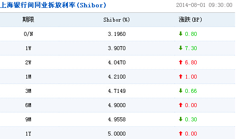 此外,從8月1日起,上海銀行間同業拆放利率(Shibor)提前至9:30發布,同時簡化Shibor報價期限品種。