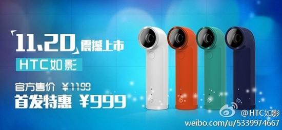 新浪科技訊 11月17日消息,根據HTC在微博上透露的消息,HTC新一代拍攝神器ReCamera(中文名“如影”),本月20日將在HTC的官方商城正式開售,首日特惠僅999元(官方指導價1199元)。此外,同步開售的還有新機Desire 820S全民飛揚版,同樣限時特惠。