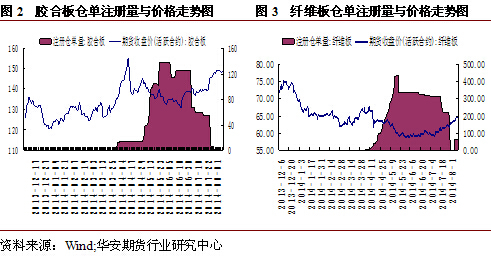 兩板自今年4月開始注冊倉單以來,倉單注冊進展一直成為市場關注和炒作的焦點。通過下圖我們可以發現,倉單注冊量的變動與期價具有較為明顯的反向關係,倉單量的高點基本對應期價的階段性低點。隨著7月倉單集中注銷,兩板期價也再度反彈走高。目前近月主力合約bb1409合約已攀升至150上方,fb1409也震盪反彈至四個月高位,圍繞倉單因素的博弈令多空雙方遲遲不愿移倉,一方面若價格持續高位,將吸引賣方參與交割;另一方面,隨著時間推移,保證金上調壓力或將逼迫資金移倉,價格走高勢頭或難以持續,關注新倉單注冊進展。