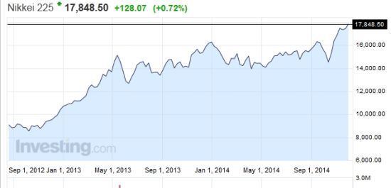 今年選舉的主要話題是“安倍經濟學”。以安倍首相為首的自民黨堅信只有“安倍經濟學”才能救日本,而在野黨齊聲譴責“安倍經濟學”除了撒錢使日元貶值外沒有任何效果。日本的老百姓究竟是聽誰的,只有12月14日去回答了。出於職業習慣,筆者最感興趣的是在國會答辯時,在強調“安倍經濟學”確實已經見效時,安倍首相列舉的證據是自從上任之后股價已經漲了將近一倍,但是在野黨們也用此證據攻擊“安倍經濟學”再次拉大了日本的貧富差距。根據野村綜合研究所的抽樣調查,受惠於股市大漲,去年金融資超過1億日元的家庭數同比增加20%,但是仍然有30%的家庭沒有任何金融資。看來股價跌也不是,股價漲也不是,在回答在野黨提問時,安倍首相有點發火也情有可原。