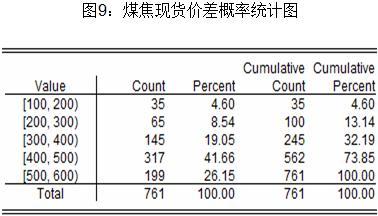 通過設定顯著性水平為10%,我們判斷焦炭和焦煤的合理價差區間是在(290,540),選擇290作為價差下限不僅因為歷史統計數據結果,而且考慮到焦炭的主要生產成本是焦煤,如果二者價差過小意味著焦炭價格已經低估,后期價差回歸的空間加大。
