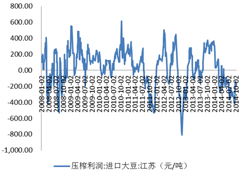 圖4 江蘇張家港進口大豆壓榨利潤走勢