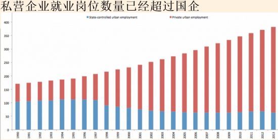 經濟結構調整的另一個重要標誌也值得強調,去年,中國經濟中的第三業(服務業)值首次大於第二業(工業和建築業),而且這股趨勢今年還在繼續。去年服務業創造了2000萬個新增就業機會,與此同時工業就業機會則在萎縮。