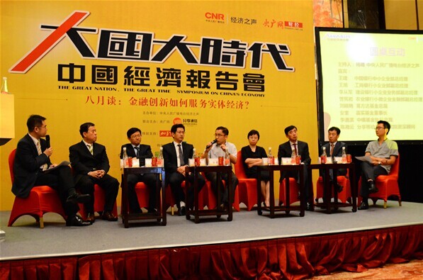 和訊網訊息 傾聽高階對話,感受智慧碰撞。由中央人民廣播電臺經濟之聲、央廣網和分享通信聯合主辦的《大國大時代中國經濟報告會》八月談,8月25日在北京舉行,報告會以“金融創新如何服務實體經濟?”主題。中國人民銀行研究局副局長紀敏、工業和資訊化部中小企業司司長鄭昕、中國銀行(601988,股吧)中小企業部總經理王建、建設銀行(601939,股吧)小企業業務部副總經理李從軍、工商銀行(601398,股吧)小企業部副總經理王旭、農業銀行(601288,股吧)小微企業金融部副總經理、分享通信執行總裁康志斌、易方達基金總裁劉曉艷、嘉實基金(博客,微博)董事長安奎、中銀基金執行總裁李道濱等嘉賓出席,並共同探討金融改革與實體經濟發展問題。