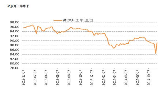 隨著apec會議結束,鋼廠高爐開工率有所回升,截至11月21日,回升到89.09,回升到10月初水平。