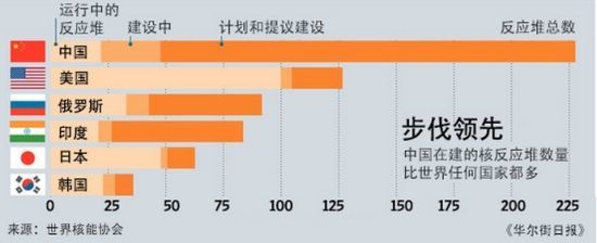 國際原子能機構(International Atomic Energy Agency,簡稱IAEA)的數據顯示,在全球正在建造中的71個核反應堆中,目前中國在建的有26個。世界核能協會(World Nuclear Association)稱,中國還在規劃或擬建另外180個核反應堆。