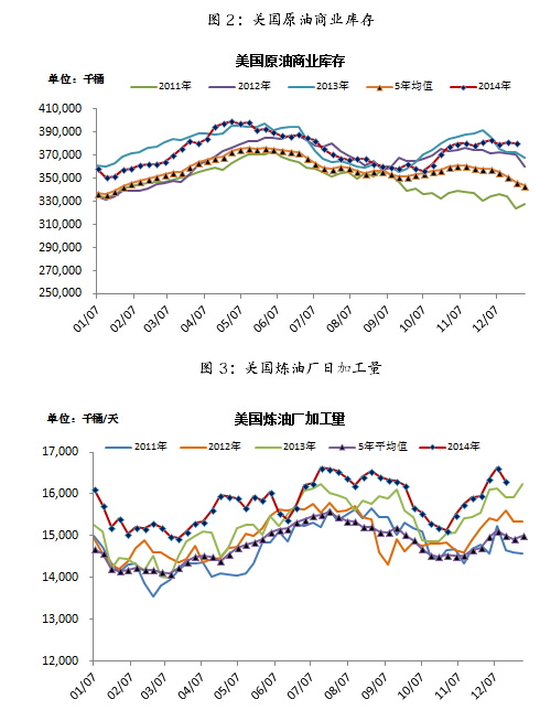 隨著國際油價的大幅下跌,美國頁岩氣受到一定沖擊,石油產量出現回落。因此,即便煉油廠開工率大幅回落,但是美國原油商業庫存依然下降。