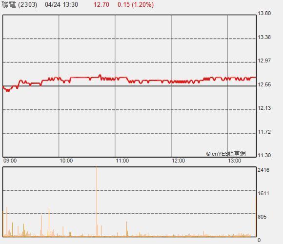 聯電庫藏股5月6日已實施完畢,公司持股成本在11.23元;聯電ADR近月展現了補漲氣勢,在台掛牌股價今天也再度展開了看錯補漲,成交量爆出蛇年最大,但仍低於2010年10月28日的45.45萬餘張水準。聯電今年以來漲勢7.69%,加計今天漲幅,一周漲10.53%、快速超越電子類股平均8.8%以上幅度。