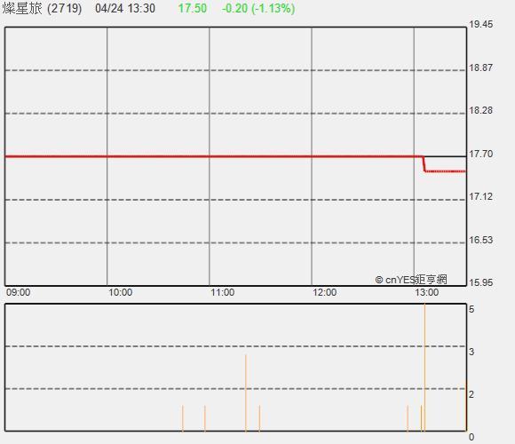 燦星旅早盤以漲逾3%開出,股價在27元上下波動。