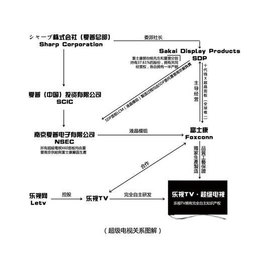 超級電視跟夏普(中國)從來就沒有任何直接的商業合作關係。超級電視X60是通過與富士康合作,採用夏普2010年在日本大阪設立的工廠(十代)生的X超晶面板。