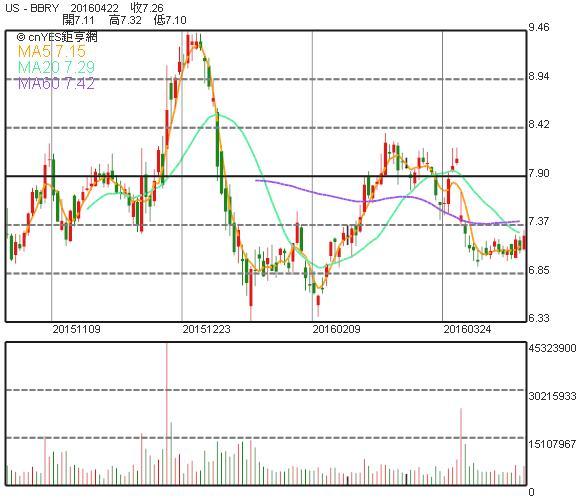 BlackBerry股價K線圖
