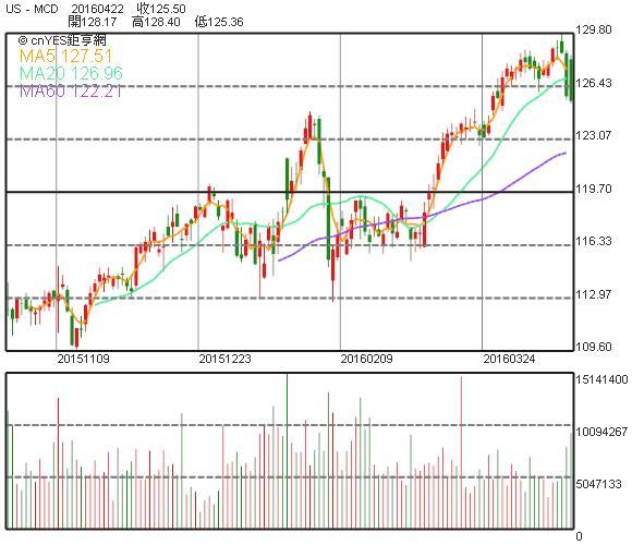 今年迄今麥當勞股價已上漲13%,優於S&P’s 500指數的9%升幅。麥當勞全美約有 14000家餐廳。