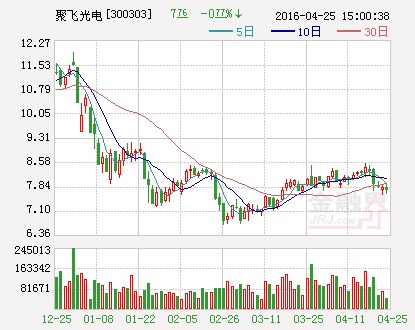 數據顯示,聚飛光電最新收盤價為16元,自去年12月4日以來累計上漲143.93%,今年一季度歸屬母公司股東的凈利潤同比增長19.23%,市盈率(TTM)為36.19倍,近1個月有7家機構給予“買入”評級。
