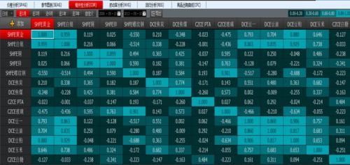 我們簡單分析近一個月的市場波動變化,如下圖我們主要選擇了周期性板塊品種,看到的各品種之間的相關性特點: