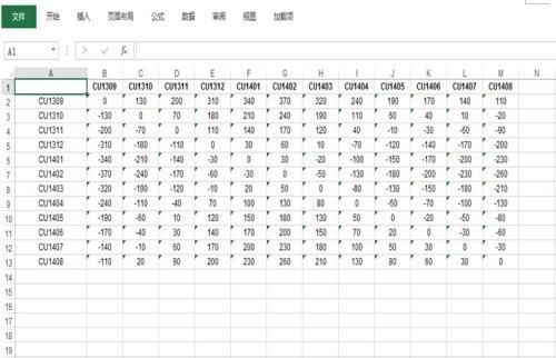 以銅為例,觀察一下近期各合約的升水情況,價差矩陣如下(今日臨收盤隨機選取):