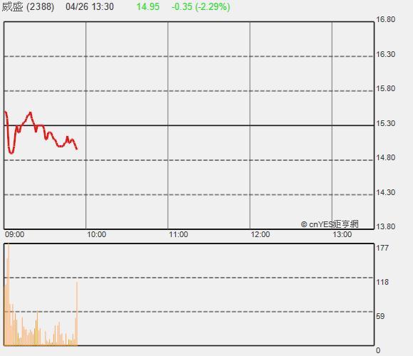 威盛今日股價未反應營收利多,早盤一度重摔跌停,回測 5 日線支撐,午盤前成交量已放大至8500多張。
