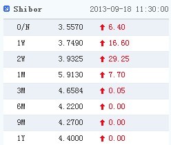 上海銀行間同業拆放利率(Shibor)同樣上漲,短期利率方面,隔夜利率漲6.40個基點,至3.5570%;7天期利率漲16.60個基點,至3.7490%;14天期利率漲29.25個基點,至3.9325%;1個月期利率漲7.7個基點,至5.9130%。