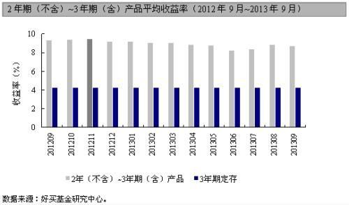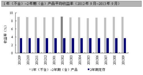 存續期為一年期(及以下)的產品有93只,較上月減少45只,主要是上月短期理財產品數量驟增的關係。一年期的產品共有52只,平均收益率為8.50%,較8月減少5只,收益微幅下降0.1個百分點。收益率最高的中航信托的天信20號,收益為10.0%。